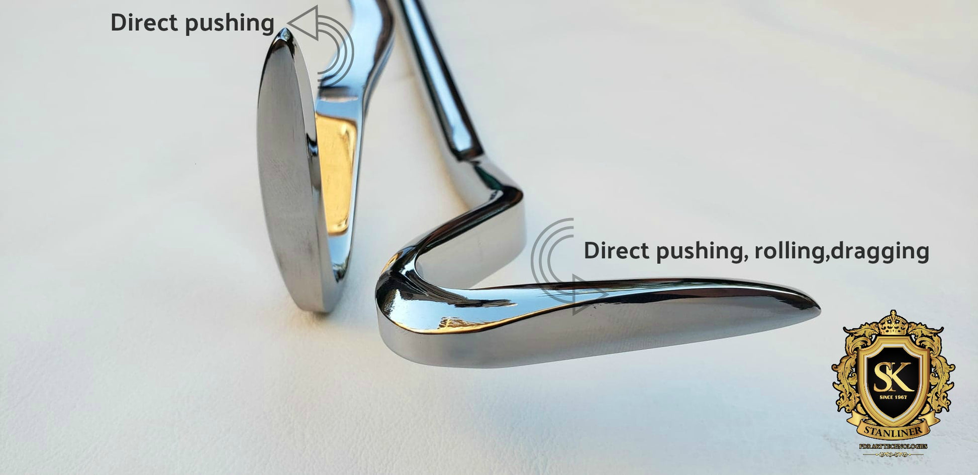 - Can be used with direct pushing or Stanlliner rolling/rocking, reverse blending, dragging techniques